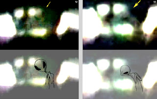 Though it is true that the previous images are clearer samples I could have obtained of the central figure, there are great the sequences and stills of interest that I have selected. Nevertheless, for motives of space and time for explaining them, I have chosen the following three stills (7, 8, and 9) that support the hypothesis of which the figure in analysis is really in the recording and is not product of games of lights and shades or a bad interpretation of any another element. In my opinion, the figure humanoid is in the filming and is in constant movement.