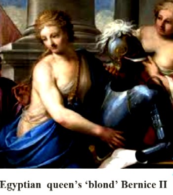 One of the e first stories we hear of blondes in ancient writing are two poems about an Egyptian queen was Berenice II. She made this offering after her husband, Ptolemy III Euergetes, returned safely from a military expedition in Syria. who dedicated a lock of her blonde hair to Aphrodite, goddess of love who was also called Venus.