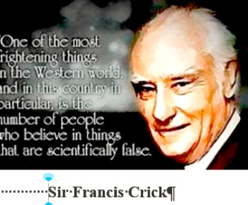 bSir Francis Crick, who along with James Watson discovered the double-helix structure of DNA. He found it so complex that in his book, “Life Itself,” Crick proposed that the basic genetic structure of bacterial DNA was seeded from outer space. It was just too complicated to have developed by chance.