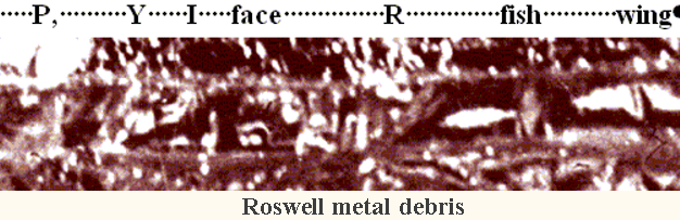 The cross matching of these symbols indicates the debris is from an object alien to Earth. All involved admit the debris shown was part of a disc recovered from the Foster Ranch near Corona, N M.