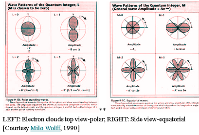 Pseudonymous blogger “The Wandering,” in a short post buried on an obscure website, notes the connection as well and says that the mathematical physicist Dr. Milo Wolff offers a better illustration of these electron clouds. And by closely examining these illustrations, we see correlations between specific Roswell glyphs and specific forms of electron cloud formations: